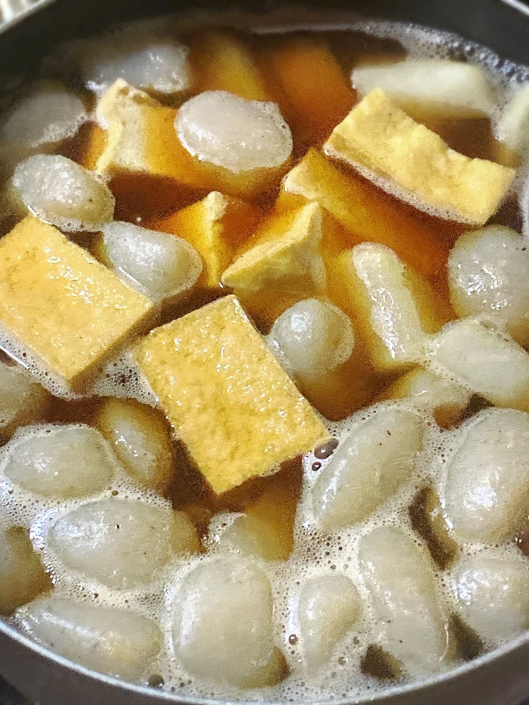 今回は玉こんにゃく、大根、厚揚げが入ってます💕
