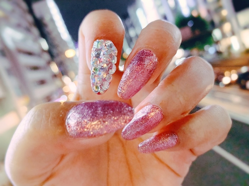 今のネイルは、ピンクラメ