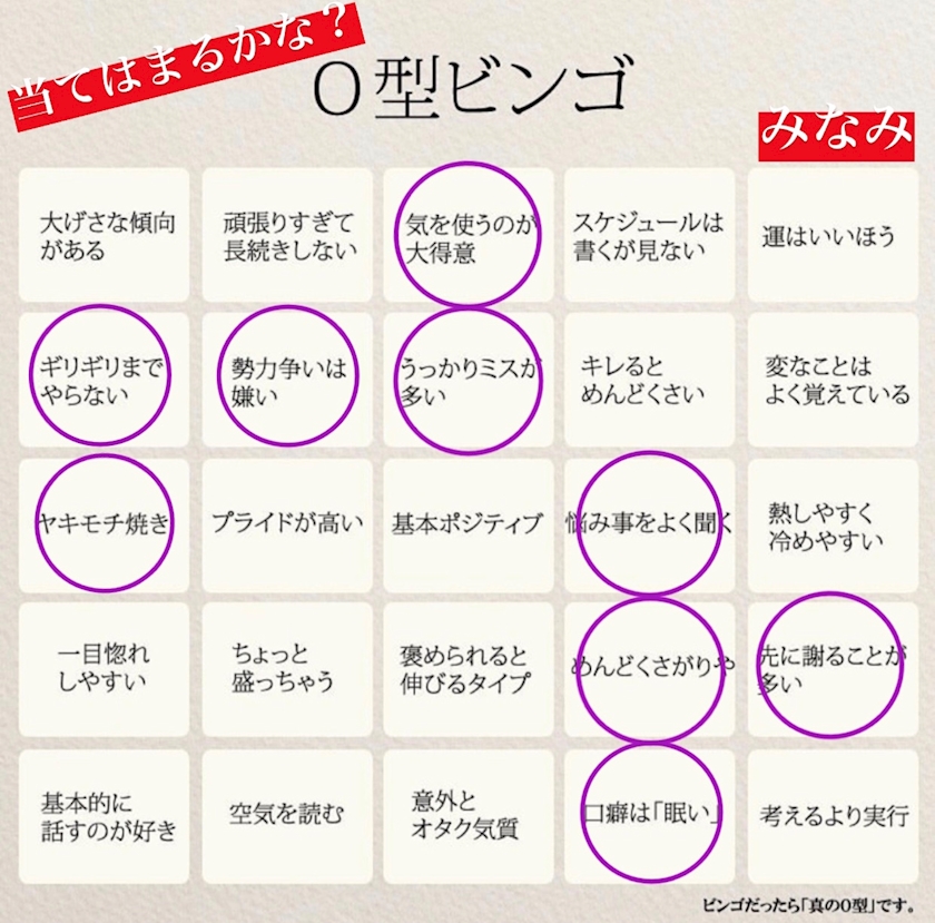 私はO型なので