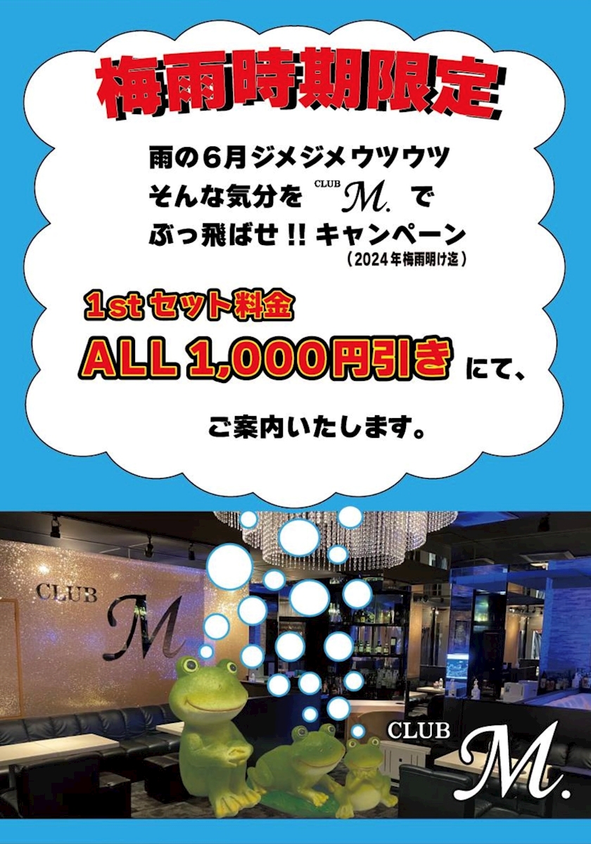 梅雨期間のキャンペーン - 💗 あん 💗 - CLUB M.・エム - 新小岩の熟女パブ/熟女キャバクラ