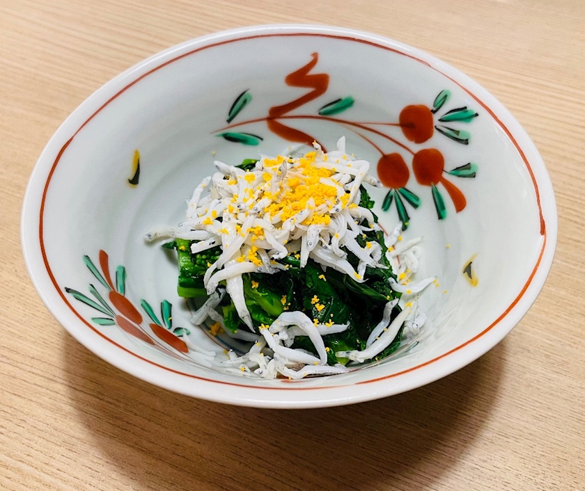 菜の花昆布じめと釜揚げしらす❤️