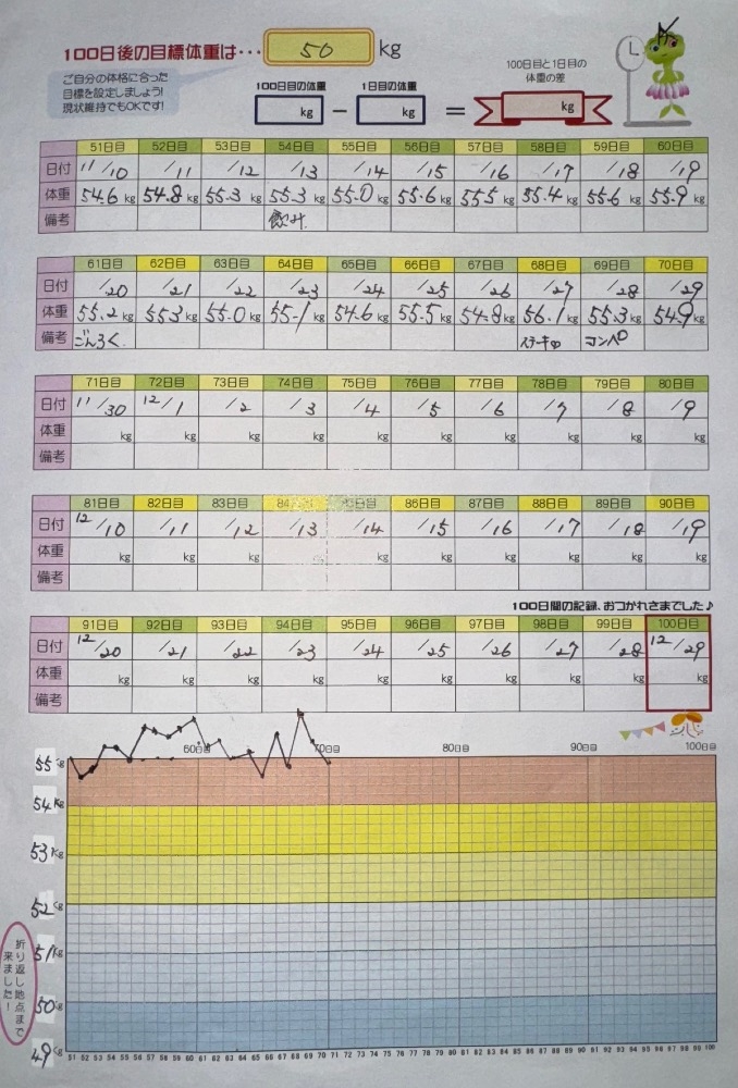 とりあえず70日目で54.9kg