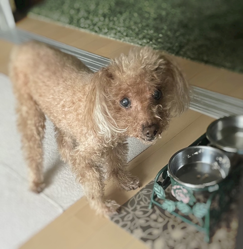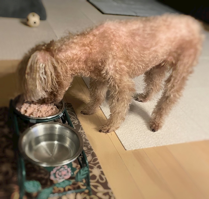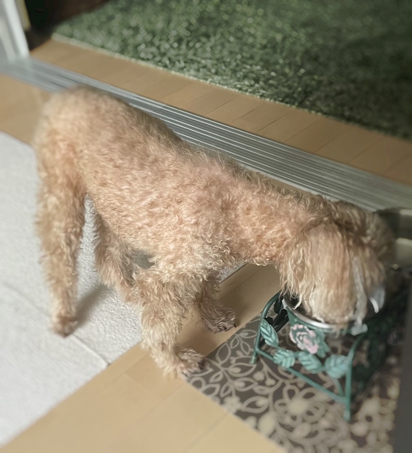 人に食べてるところを決して見せない幻の珍獣、うちのワンコ、ウニ🐶