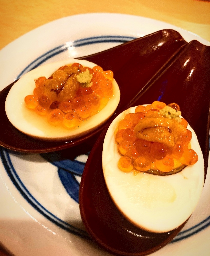 最強たまご(煮卵に雲丹といくら乗っけ)
