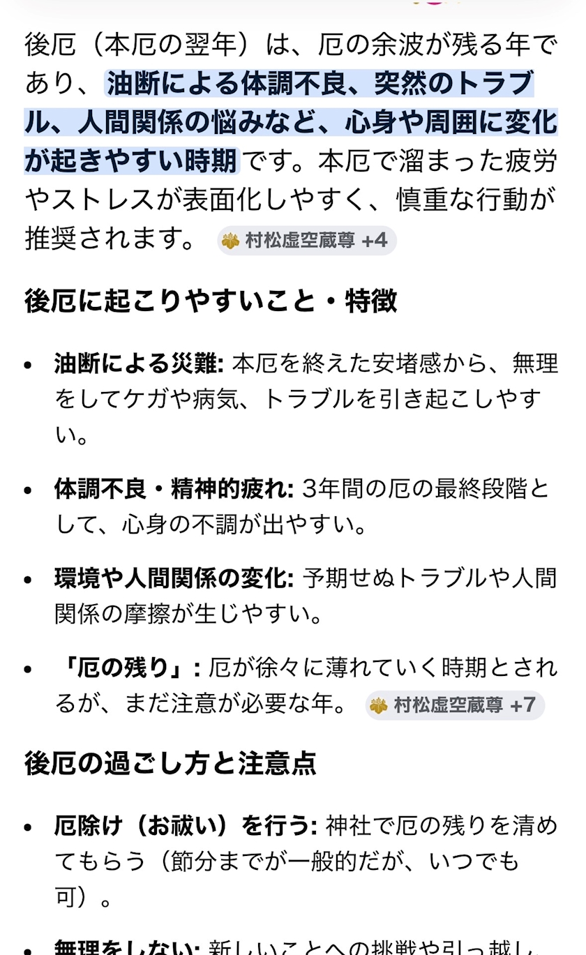 後厄が酷いとも聞いていたので