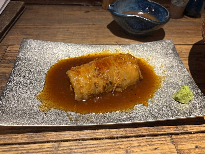 あとこれね、やまいもをお肉で巻いたやつ。確定で美味い決まってるやつね