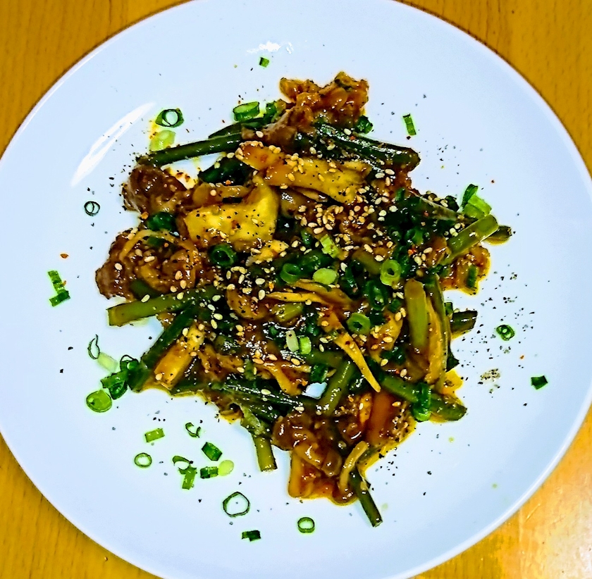 牛肉 ニンニクの芽 茸の コチュジャン炒め♪