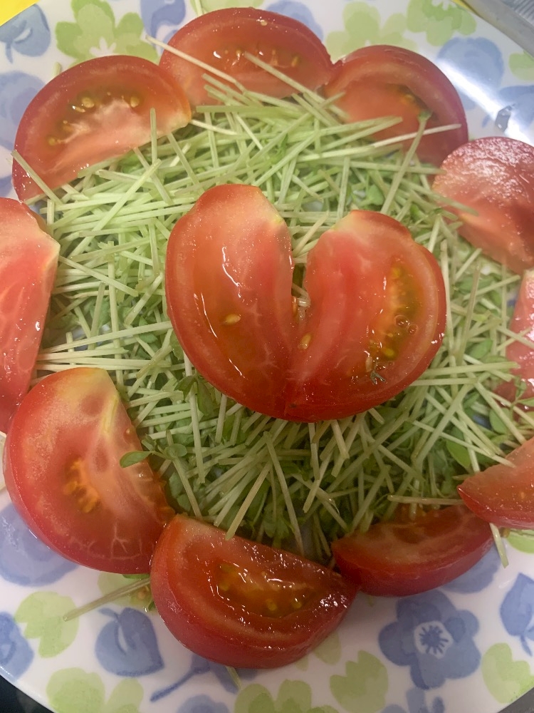 昨日食べた豆苗とトマト🍅
