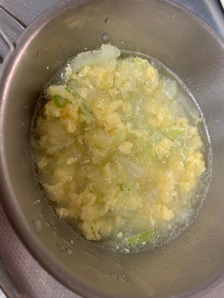溶いた卵を回し入れる