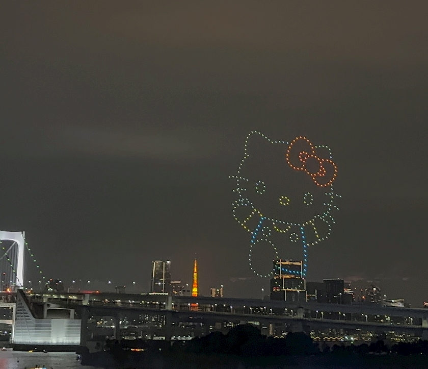 花火以外にもドローンでキティちゃんとか