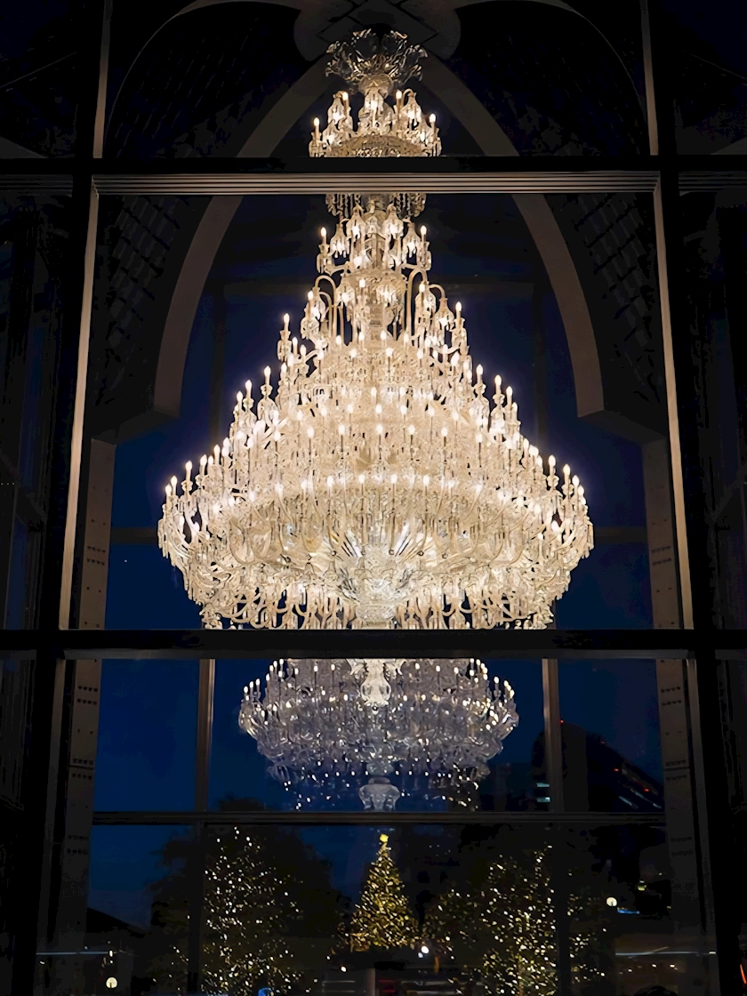 シャンデリアを背景に広角で撮影