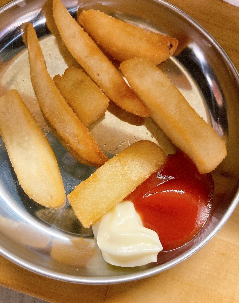 サービスでフライドポテトとレバー出していただきました🍟🍖♥️