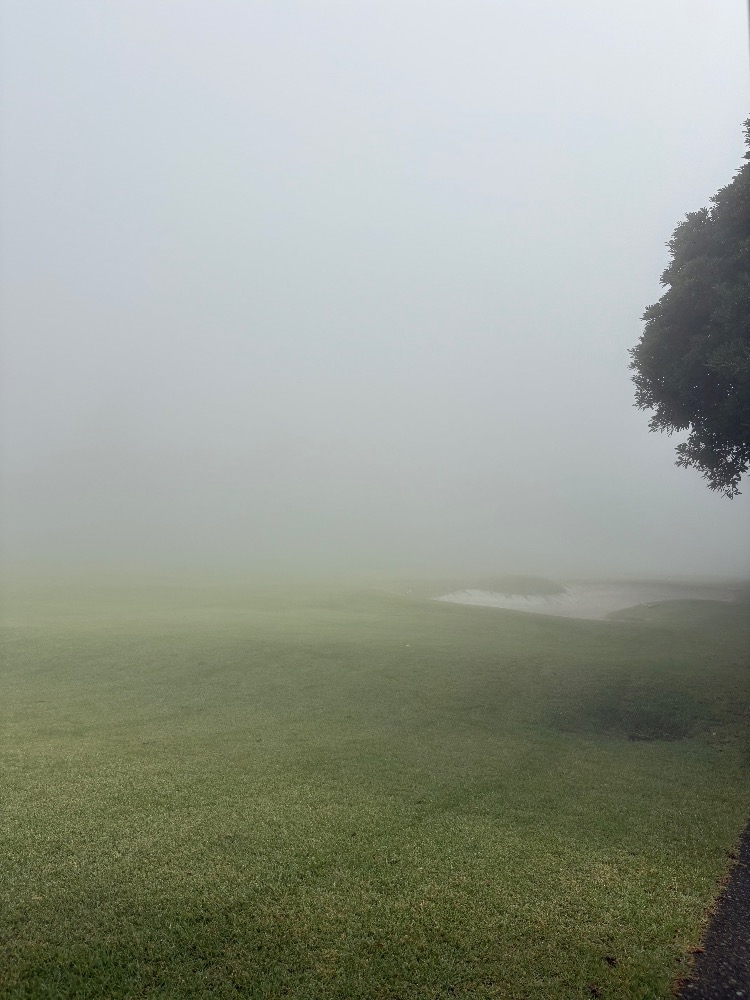 前半のゴルフはこんな霧の中の