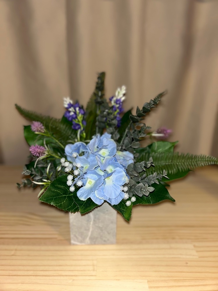 造花で作ったアレンジの写真を