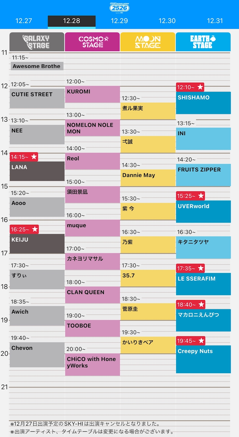 上のが今日の出演アーティストです!