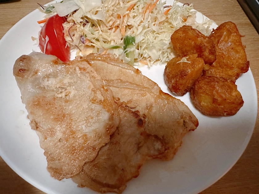 生姜焼きとサラダとポテトです🙆♀️