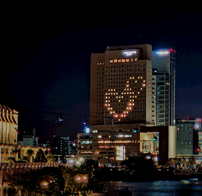 その帰りに歩いてたらなんかホテルの窓がハート模様になってたんでちゅꈍ .̮ ꈍ