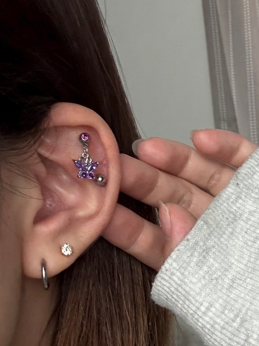 蝶のピアスがが付いてるところ
