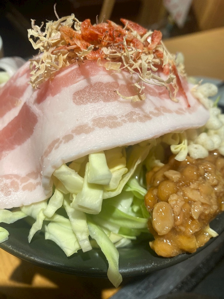 豚もんじゃに納豆トッピング🩵