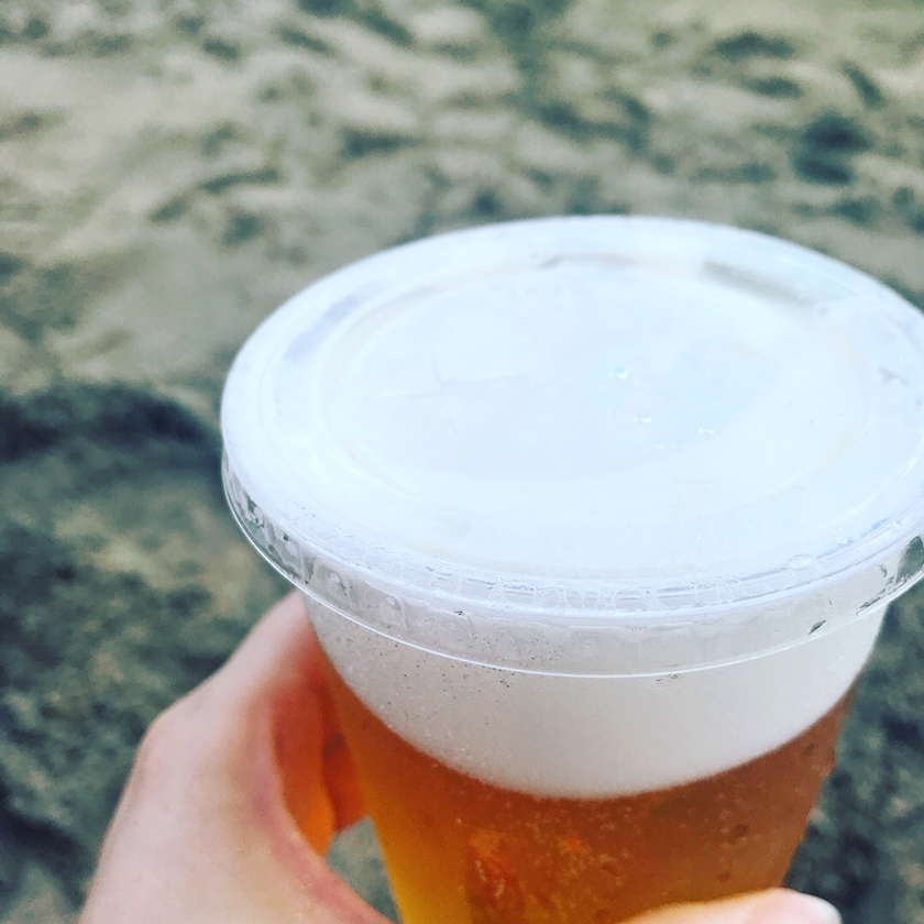 海でのむビール🍺おいしい😆❤️
