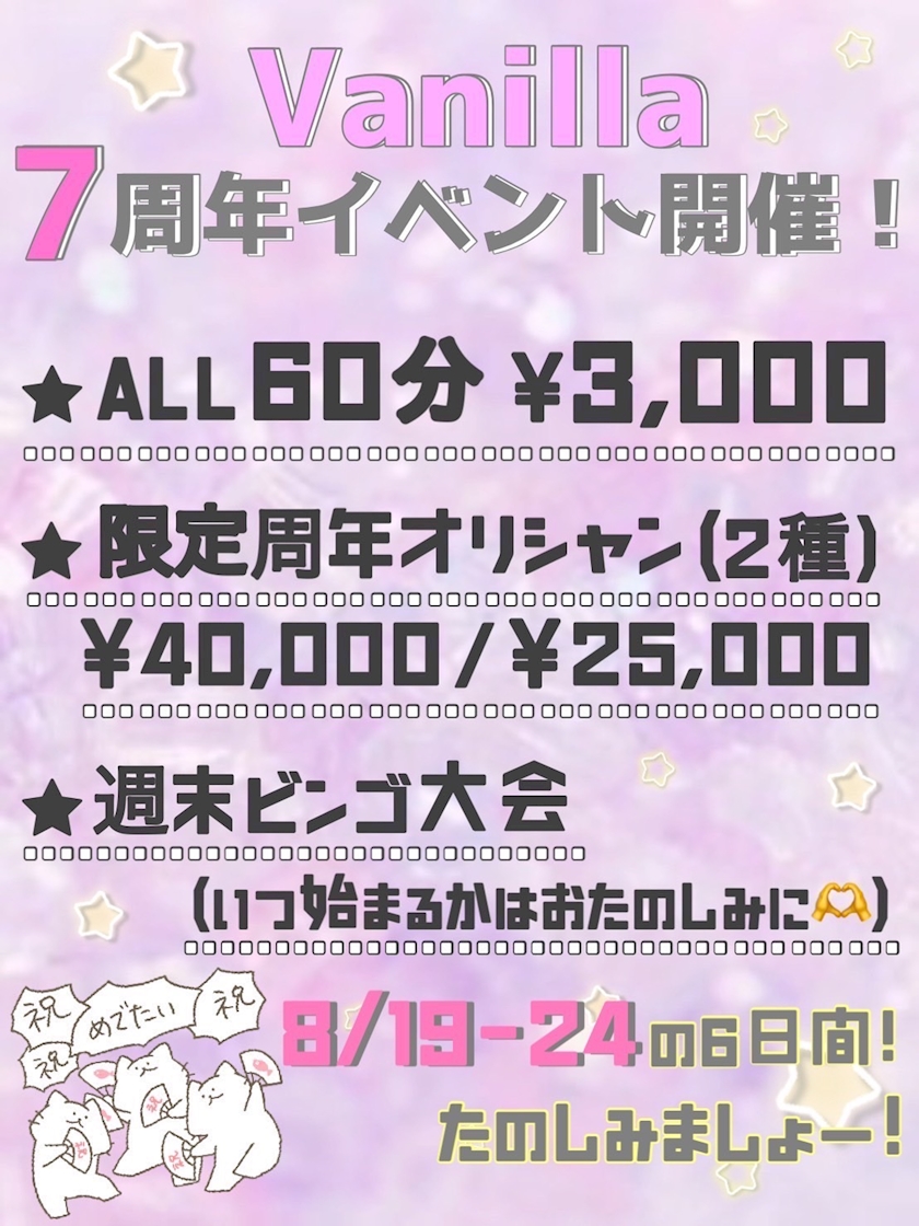 Vanillaでは現在、7周年イベント開催中です🩷