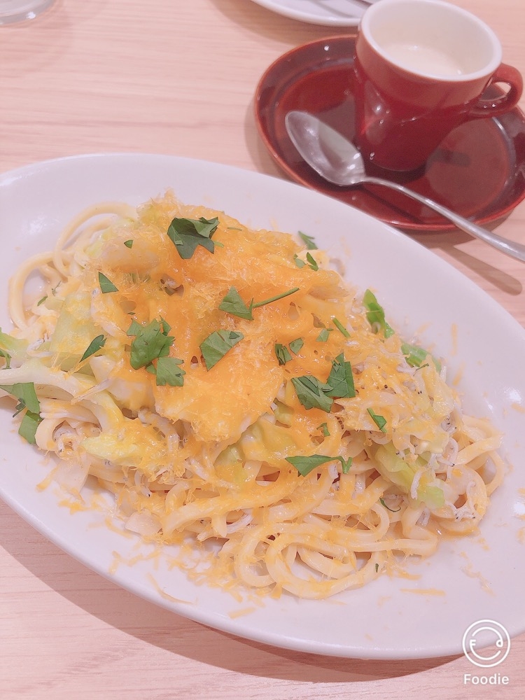 シラスと春キャベツとウドの生パスタ✨