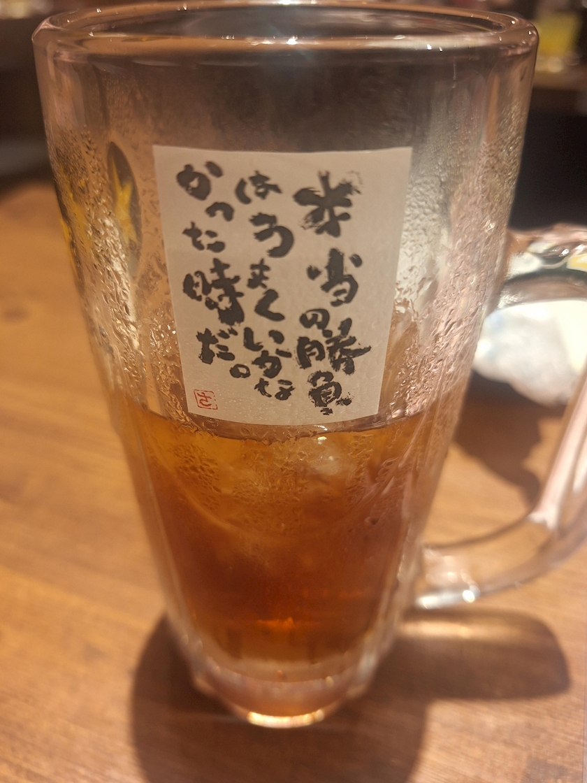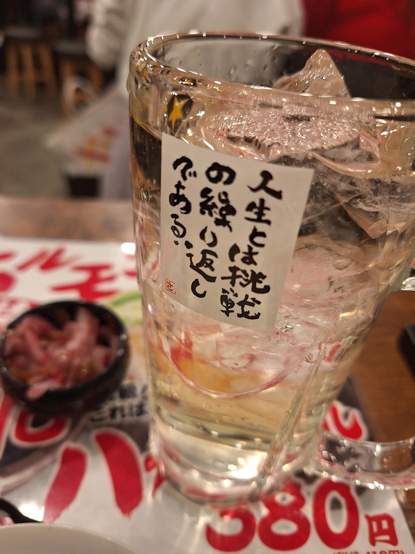 居酒屋さんの、ジョッキに書いてあるコメント