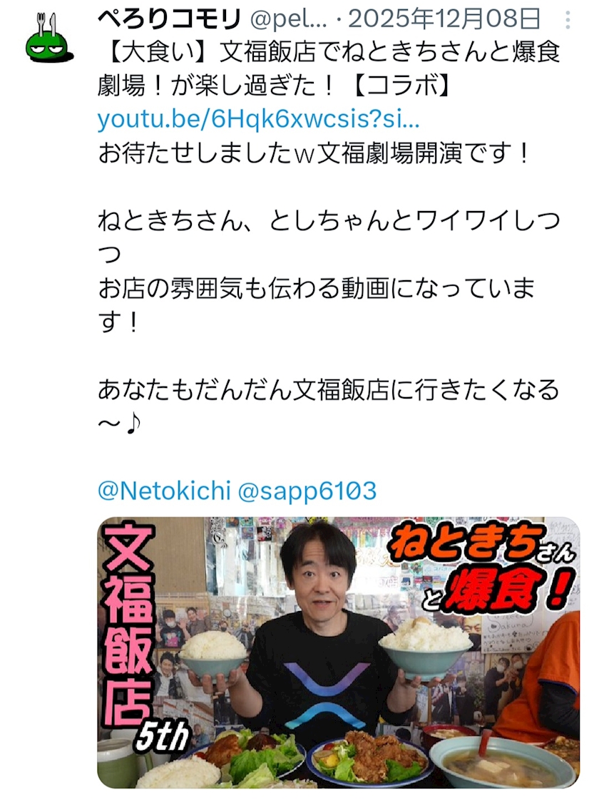 大食いチャンネルからの