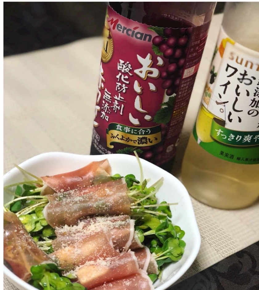 おうちでカイワレに生ハム巻いて食べました