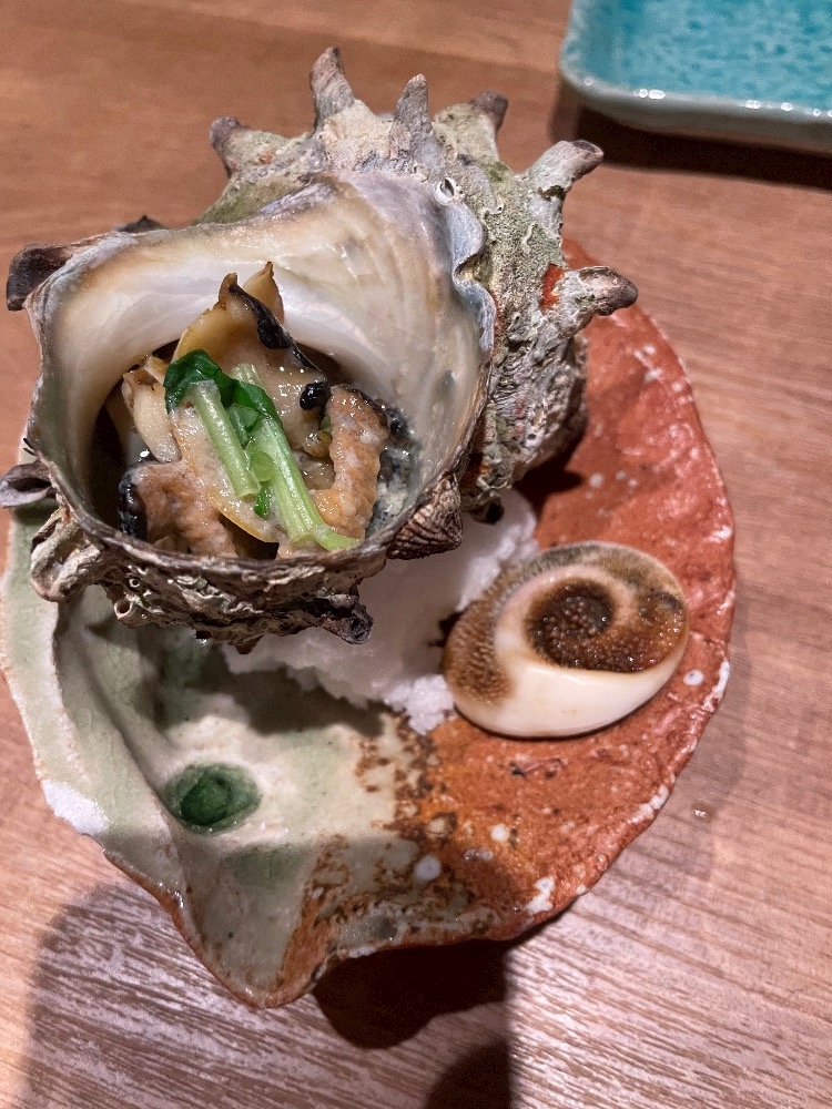 サザエの壺焼きもスライスされてて