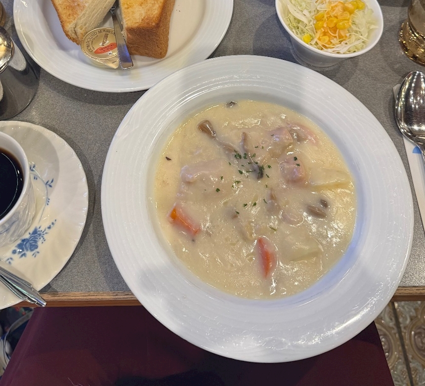 この日はクリームシチューとホットコーヒーを頼みました❕🍲☕️