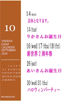 2024年10月のブログ一覧 - ラウンジ 新世界・シンセカイ - 自由が丘の熟女パブ/熟女キャバクラ