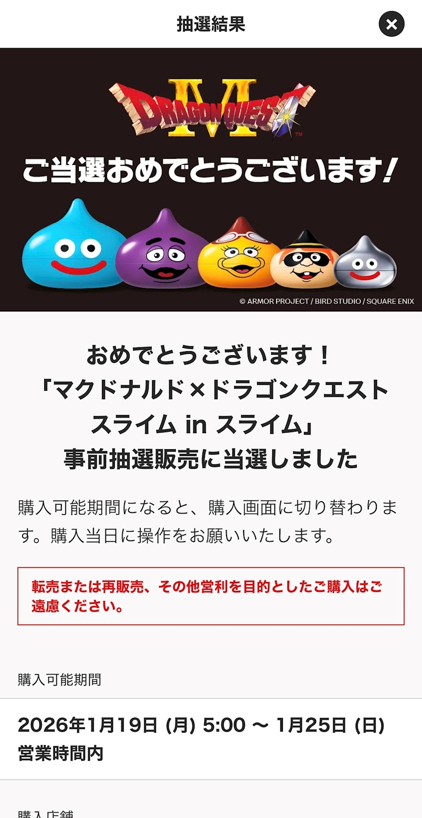 コラボのスライムの抽選販売が当たったので