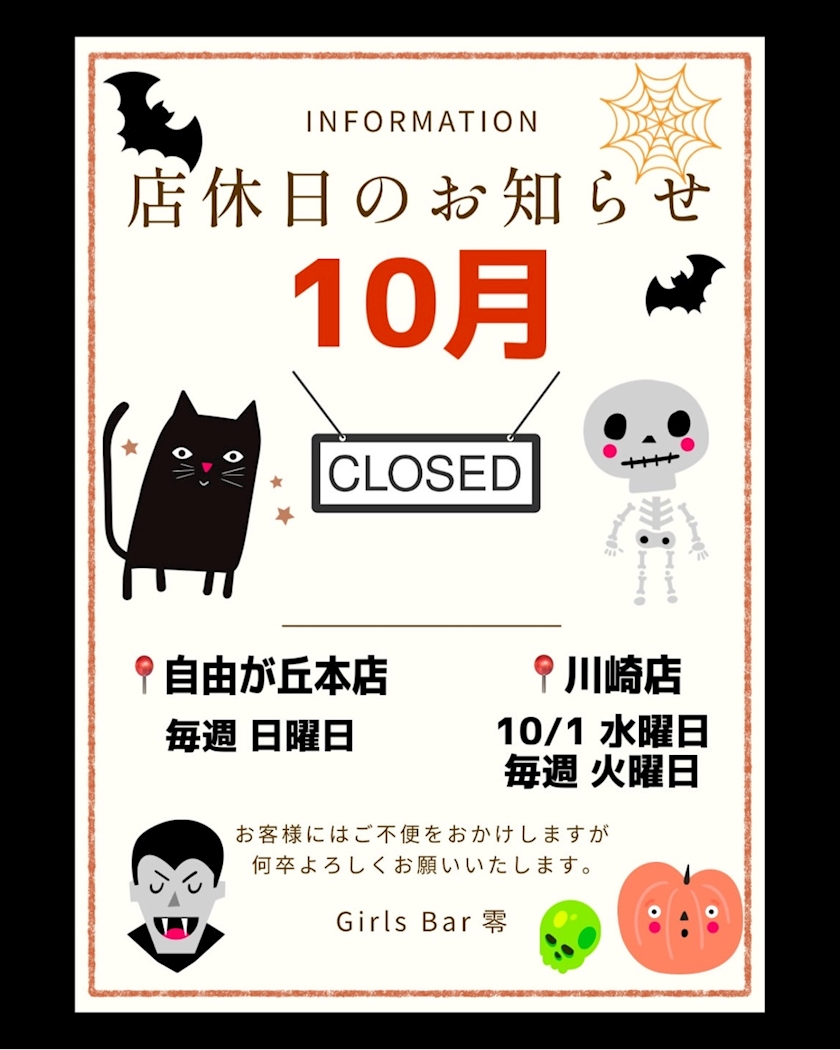 あ10月の店休日のお知らせも〜