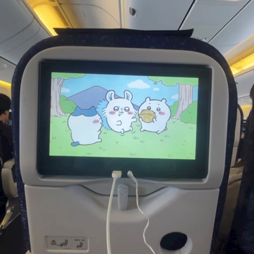 飛行機の中ではずーーっとちいかわみてた🥹🤍