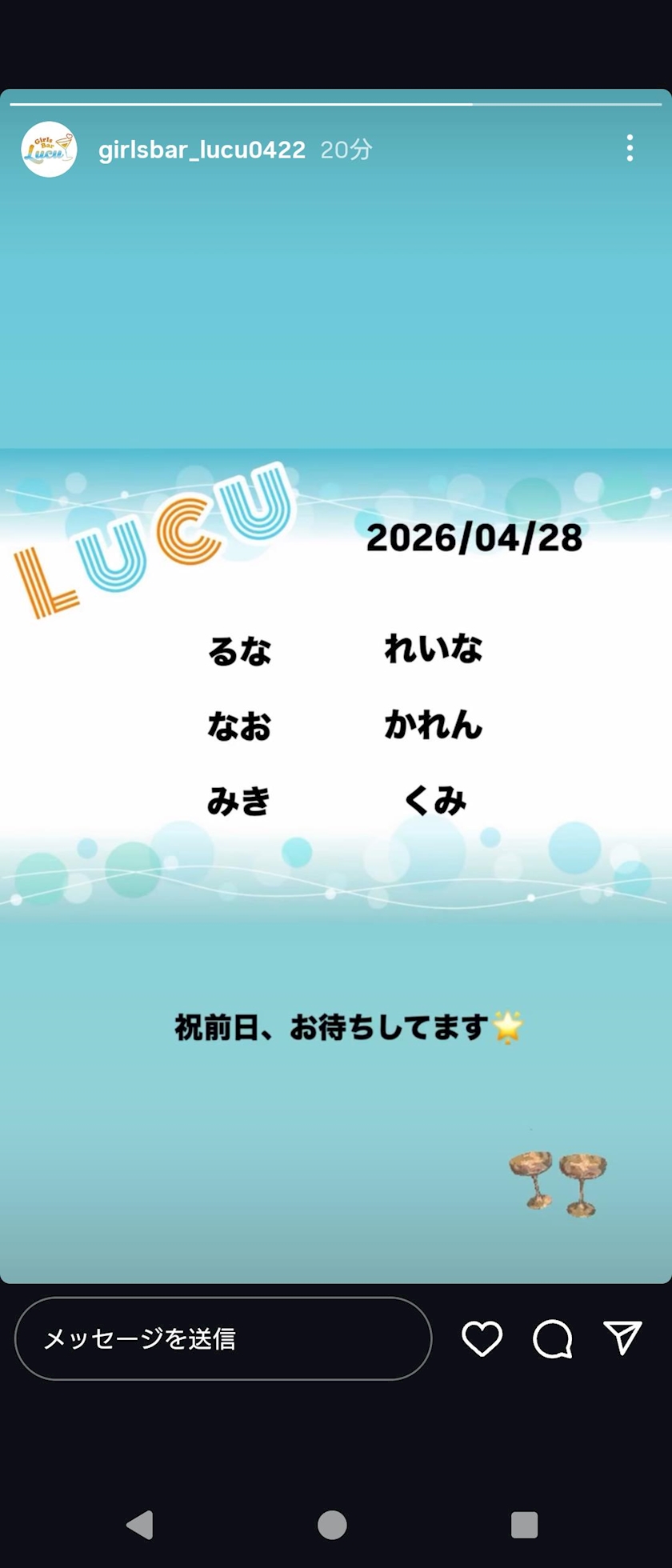 04-28 - 🩵ななこ🫧 - Girl's Bar Lucu・ルチュ - 戸越銀座のガールズバー