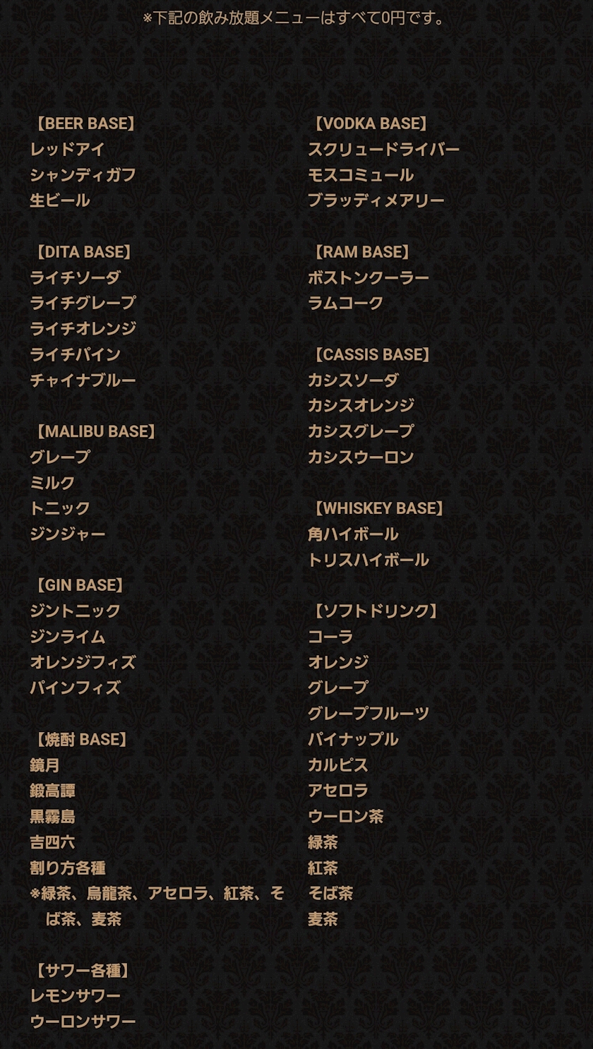 飲み放題メニューが豊富過ぎるとよく言われます(笑)