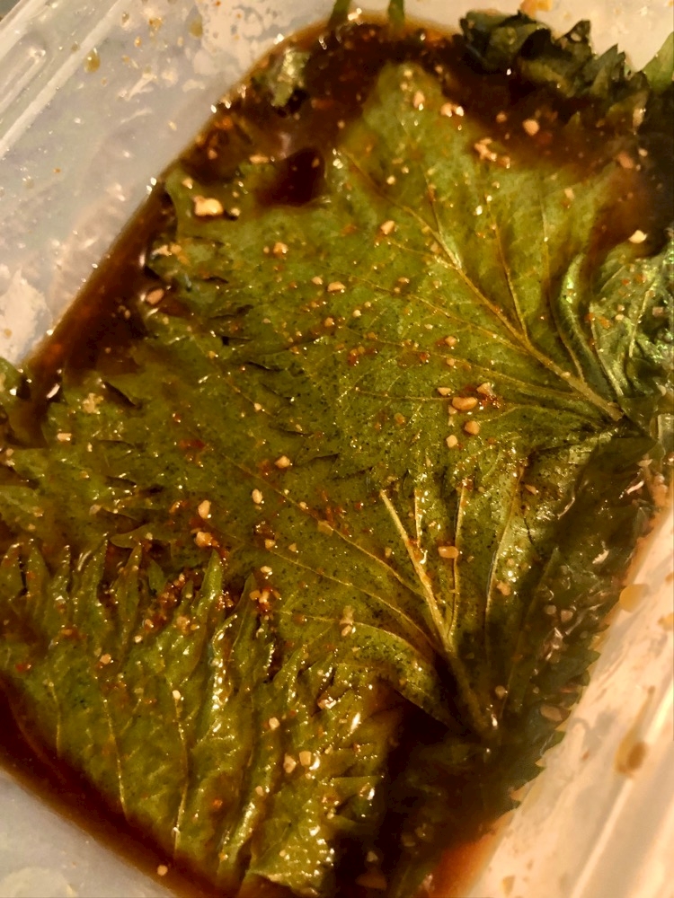漬けだれを好きなお味に配合して綺麗に洗い水気をきちんととったシソを漬け込みます