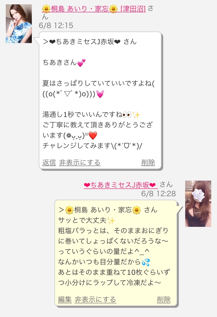 あいりさんの作ったのと比べると私のがしっとり感が強いから…4.5秒湯通ししたかもww