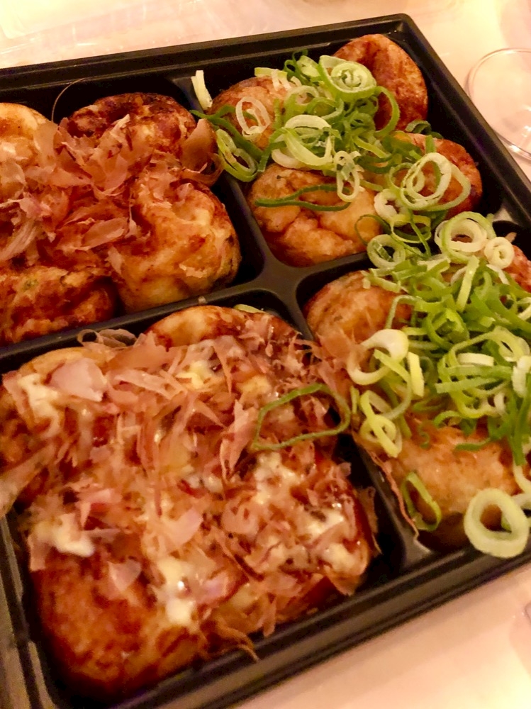 みんなでワイワイほろ酔いの中〜出前のたこ焼きも到着🐙💗