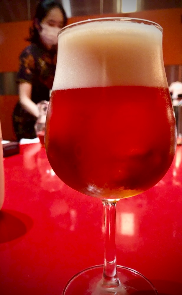 この赤いビールも綺麗〜泡がクリーミー