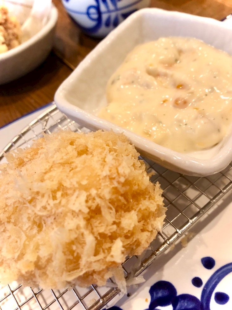 単品で一口サイズのマグロカツと帆立フライを🐟