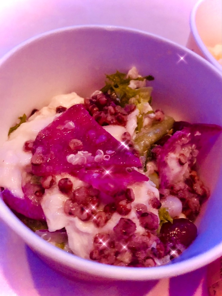 湯葉とビーツと豆のサラダは💜