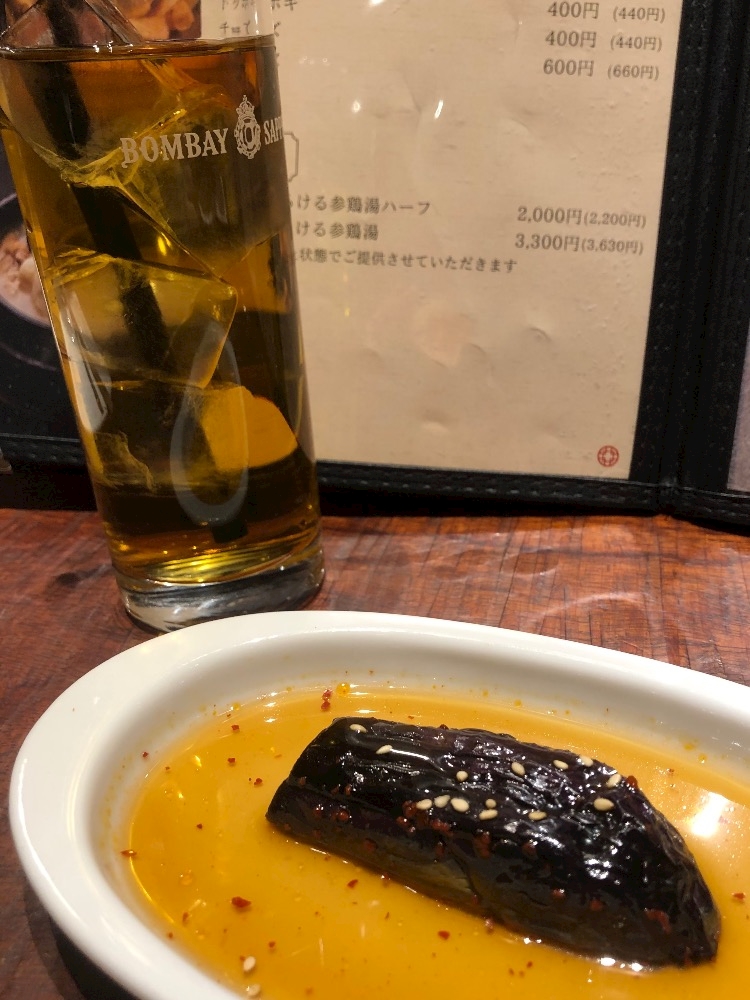 お通しはピリ辛お茄子🍆💕