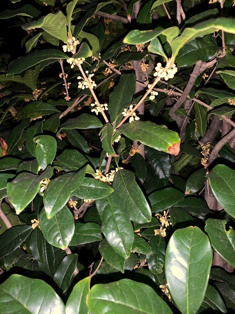部屋の窓を開けると金木犀の木があるので