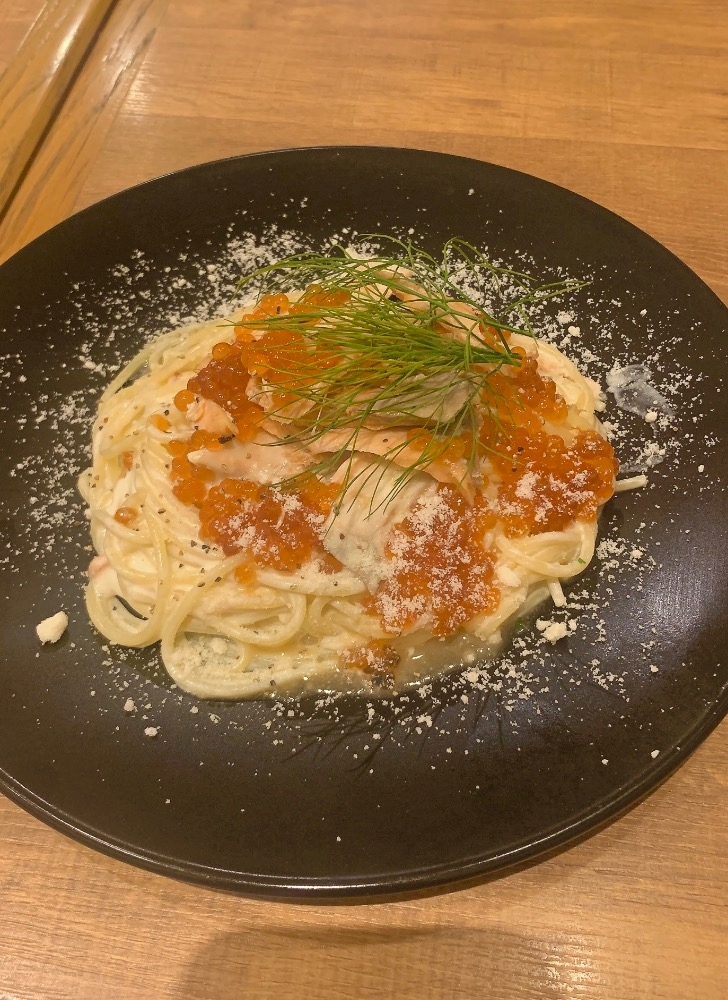 いくらとサーモンのクリームソース✨️