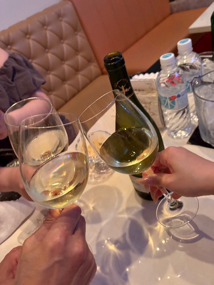 白ワインをいただいてみんなで乾杯🥂