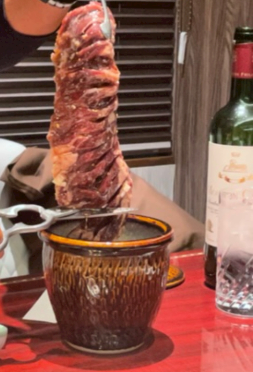 壺の中に肉や野菜がたくさん詰まっててびっくり🫢