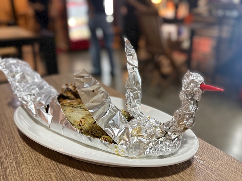 鳥の銀紙に入った魚と何か辛いの食べました🥵