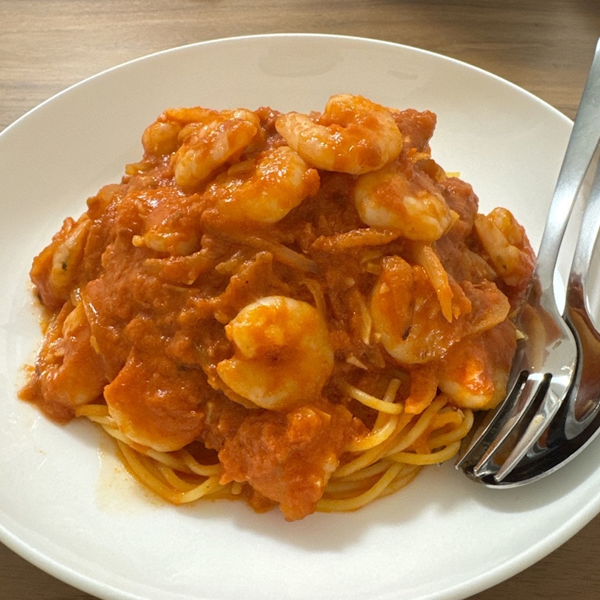 海老のトマトクリームパスタ🤤🤤